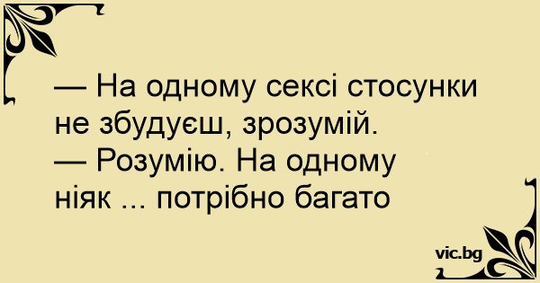 — Розумію. На одному ніяк ... потрібно багато сексу.