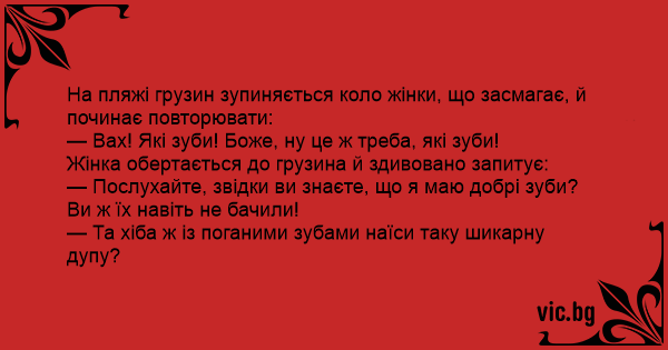 — Та хіба ж із поганими зубами наїси таку шикарну дупу?
