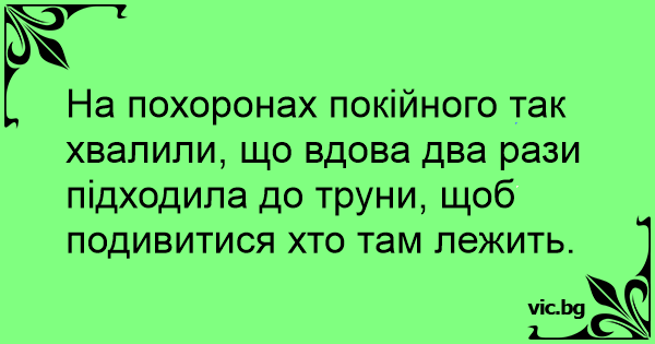 На похоронах покійного так хвалили, що вдова два рази підходила до труни, щоб подивитися хто там лежить.