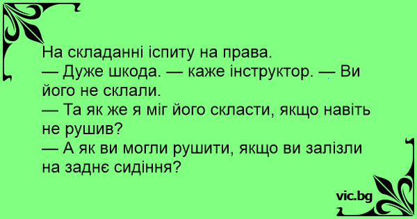 — Дуже шкода. — каже інструктор. — Ви його не склали.