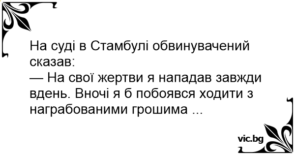 — На свої жертви я нападав завжди вдень. Вночі я б побоявся ходити з награбованими грошима ...