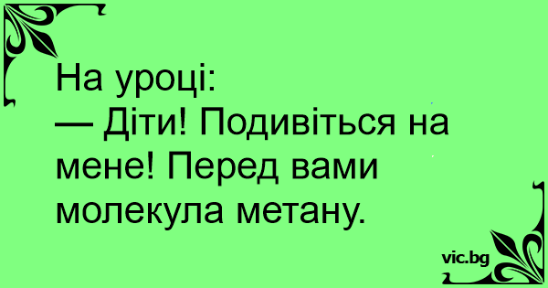 — Діти! Подивіться на мене! Перед вами молекула метану.