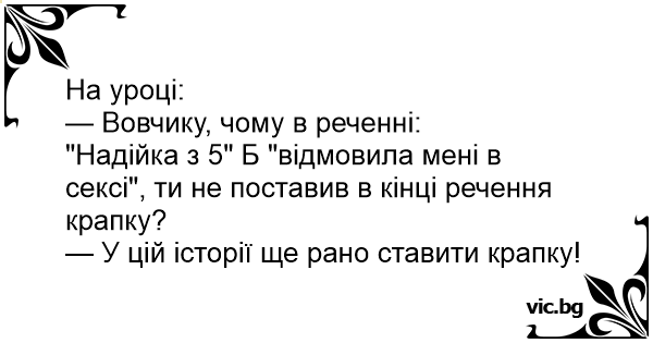 "Надійка з 5" Б "відмовила мені в сексі", ти не поставив в кінці речення крапку?