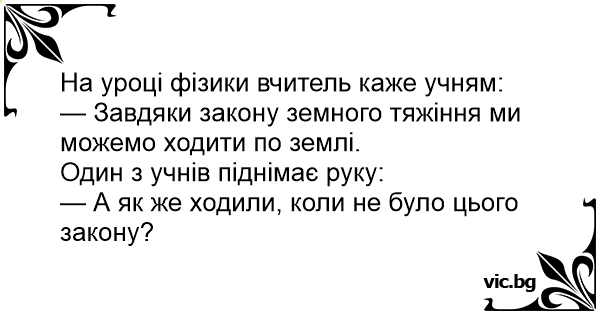 — Завдяки закону земного тяжіння ми можемо ходити по землі.