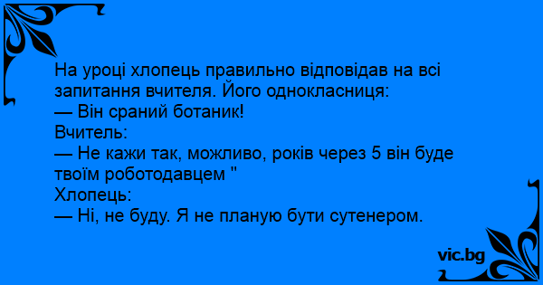 На уроці хлопець правильно відповідав на всі запитання вчителя. Його однокласниця: