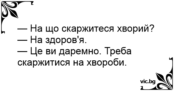 — Це ви даремно. Треба скаржитися на хвороби.