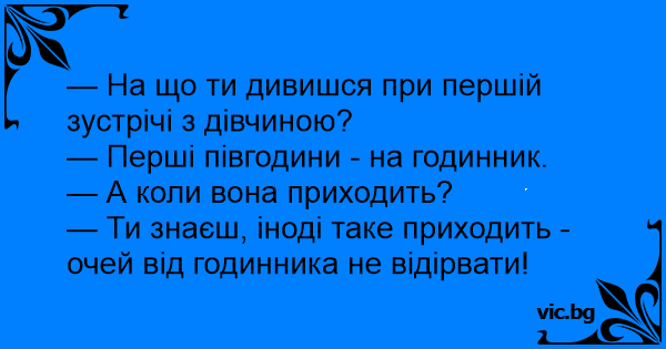 — Ти знаєш, іноді таке приходить - очей від годинника не відірвати!