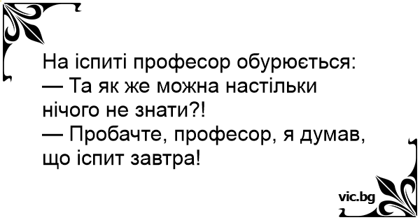 — Пробачте, професор, я думав, що іспит завтра!