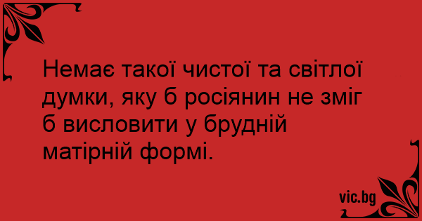 Немає такої чистої та світлої думки, яку б росіянин не зміг б висловити у брудній матірній формі.