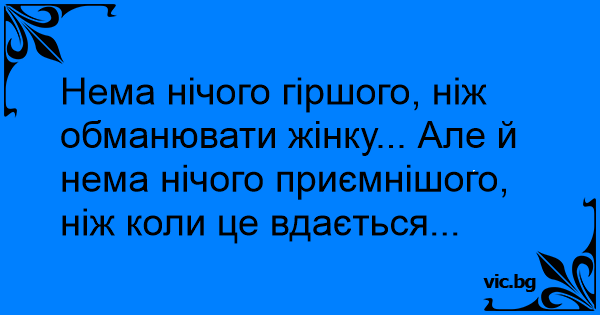 Нема нічого гіршого, ніж обманювати жінку... Але й нема нічого приємнішого, ніж коли це вдається...