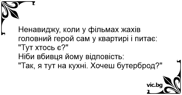 Ненавиджу, коли у фільмах жахів головний герой сам у квартирі і питає: