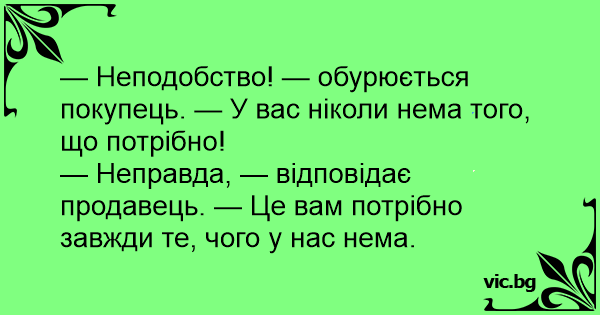 — Неправда, — відповідає продавець. — Це вам потрібно завжди те, чого у нас нема.