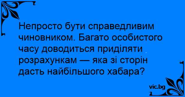 Непросто бути справедливим чиновником. Багато особистого часу доводиться приділяти розрахункам — яка зі сторін дасть найбільшого хабара?