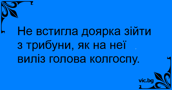 Не встигла доярка зійти з трибуни, як на неї виліз голова колгоспу.