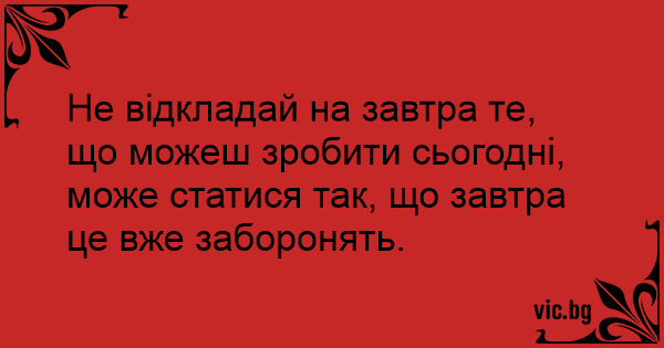 Не відкладай на завтра те, що можеш зробити сьогодні, може статися так, що завтра це вже заборонять.