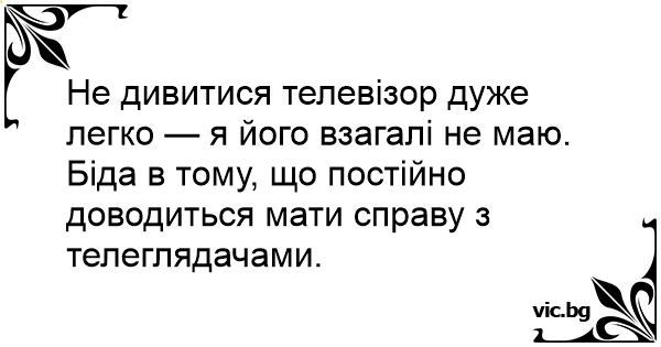 Не дивитися телевізор дуже легко — я його взагалі не маю. Біда в тому, що постійно доводиться мати справу з телеглядачами.