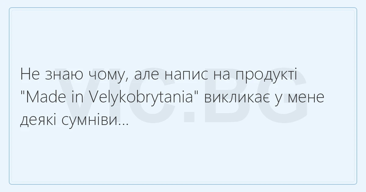 Не знаю чому, але напис на продукті "Маdе іn Vеlykоbrуtаnіа" викликає у мене деякі сумніви...