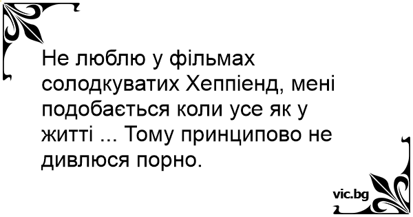 Не люблю у фільмах солодкуватих Хеппіенд, мені подобається коли усе як у житті ... Тому принципово не дивлюся пopнo.