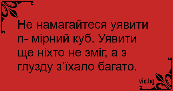Не намагайтеся уявити n- мірний куб. Уявити ще ніхто не зміг, а з глузду з’їхало багато.