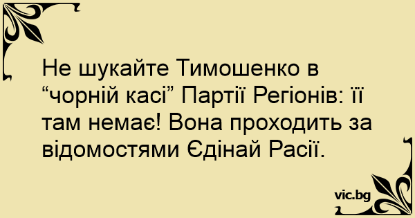Не шукайте Тимошенко в “чорній касі” Партії Регіонів: її там немає! Вона проходить за відомостями Єдінай Расії.