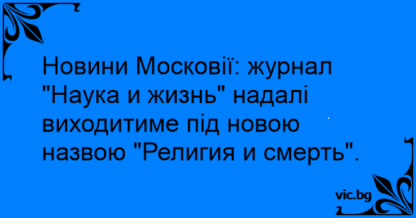Новини Московії: журнал "Наука и жизнь" надалі виходитиме під новою назвою "Религия и смерть".