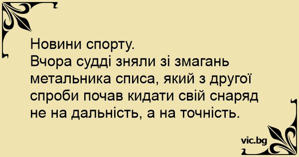 Вчора судді зняли зі змагань метальника списа, який з другої спроби почав кидати свій снаряд не на дальність, а на точність.