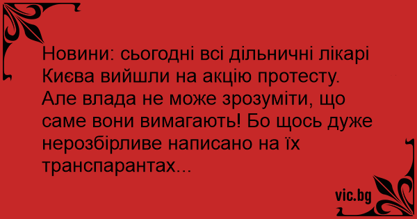 Новини: сьогодні всі дільничні лікарі Києва вийшли на акцію протесту. Але влада не може зрозуміти, що саме вони вимагають! Бо щось дуже нерозбірливе написано на їх транспарантах...