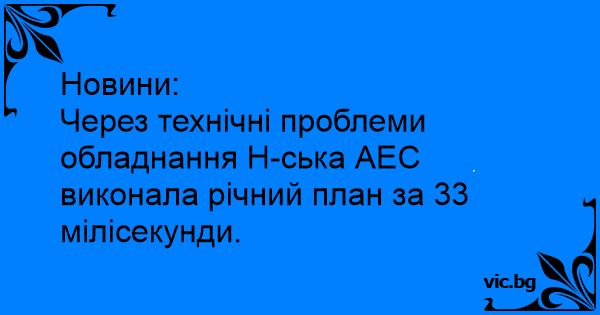 Через технічні проблеми обладнання H-ська АЕС виконала річний план за 33 мілісекунди.