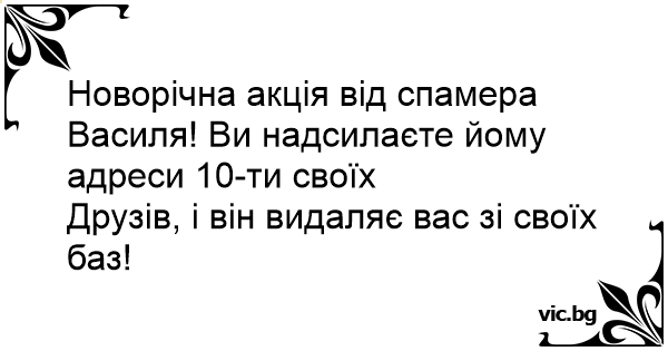 Новорічна акція від спамера Василя! Ви надсилаєте йому адреси 10-ти своїх