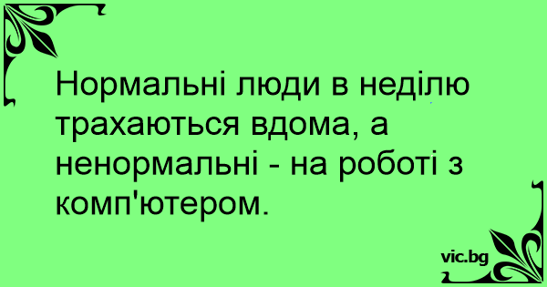 Нормальні люди в неділю трахаються вдома, а ненормальні - на роботі з комп'ютером.