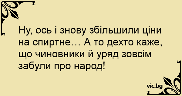 Ну, ось і знову збільшили ціни на спиртне… А то дехто каже, що чиновники й уряд зовсім забули про народ!