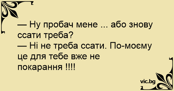 — Ні не треба ссати. По-моєму це для тебе вже не покарання !!!!