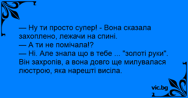 — Ну ти просто супер! - Вона сказала захоплено, лежачи на спині.
