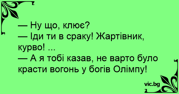 - Ну що, клює? - Іди ти в...