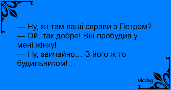 — Ну, як там ваші справи з Петром?