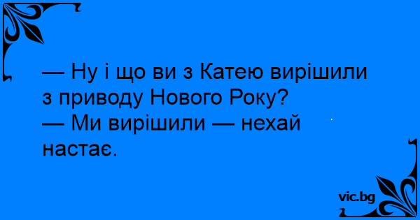— Ну і що ви з Катею вирішили з приводу Нового Року?