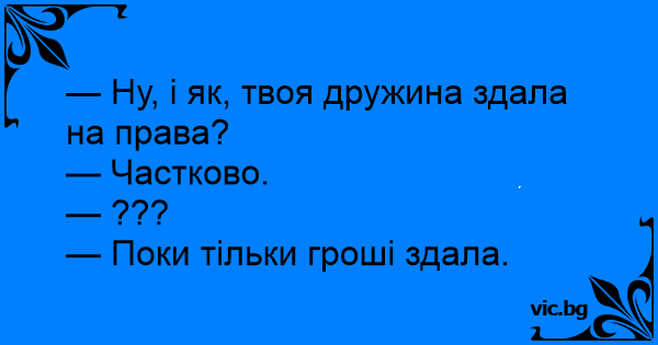 — Ну, і як, твоя дружина здала на права?