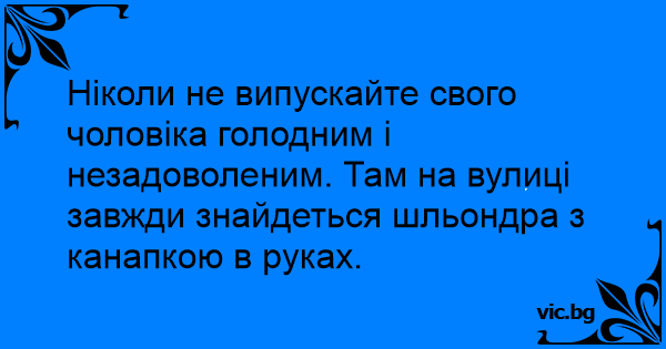 Ніколи не випускайте свого чоловіка голодним і незадоволеним. Там на вулиці завжди знайдеться шльондра з канапкою в руках.