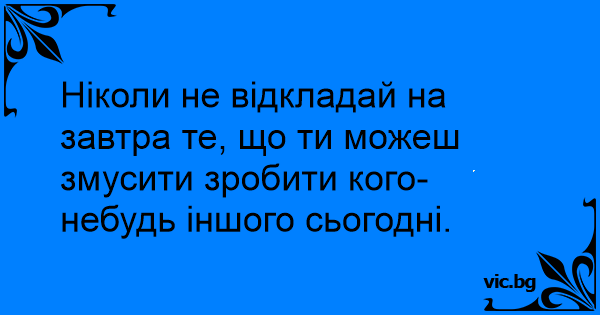Ніколи не відкладай на завтра те, що ти можеш змусити зробити кого-небудь іншого сьогодні.