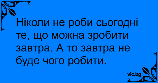 Ніколи не роби сьогодні те, що можна зробити завтра. А то завтра не буде чого робити.