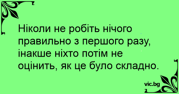Ніколи не робіть нічого правильно з першого разу, інакше ніхто потім не оцінить, як це було складно.