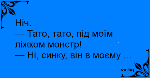 Father talks to his 5-year-old son: “No, Petie, you don’t have to worry. There is no monster sleeping under your bed. It sleeps every day in the bed next to me.”