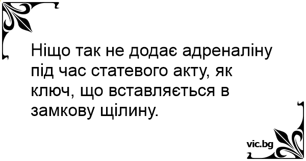 Ніщо так не додає адреналіну під час статевого акту, як ключ, що вставляється в замкову щілину.