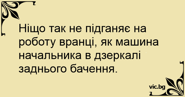 Ніщо так не підганяє на роботу вранці, як машина начальника в дзеркалі заднього бачення.