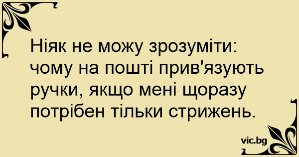 Ніяк не можу зрозуміти: чому на пошті прив'язують ручки, якщо мені щоразу потрібен тільки стрижень.