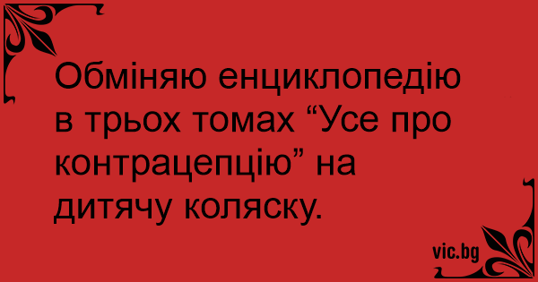 Обміняю енциклопедію в трьох томах “Усе про контрацепцію” на дитячу коляску.