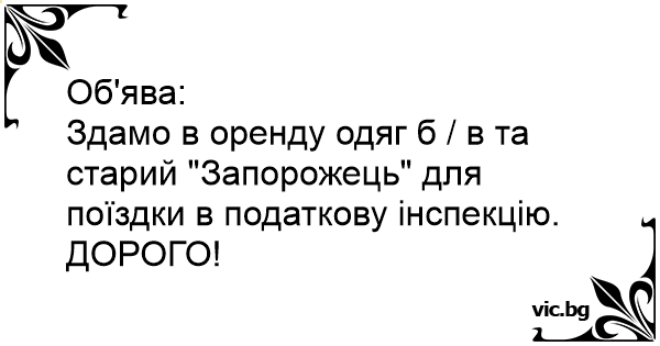 Здамо в оренду одяг б / в та старий "Запорожець" для поїздки в податкову інспекцію. ДОРОГО!