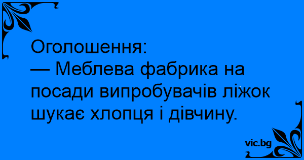 — Меблева фабрика на посади випробувачів ліжок шукає хлопця і дівчину.