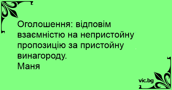 Оголошення: відповім взаємністю на непристойну пропозицію за пристойну винагороду.