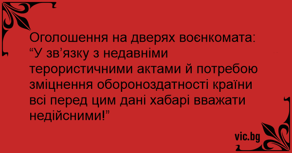 “У зв’язку з недавніми терористичними актами й потребою зміцнення обороноздатності країни всі перед цим дані хабарі вважати недійсними!”